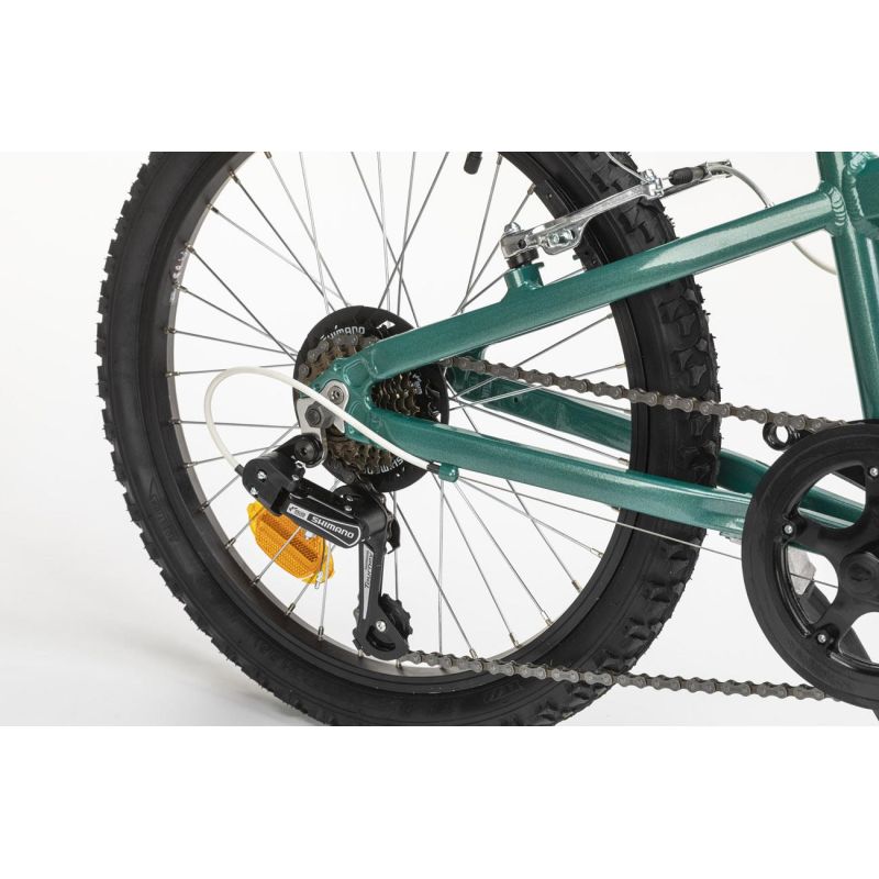Equipada con cambio Shimano de 6 velocidades y frenos V-Brake infantiles, garantiza un control suave y fiable en cualquier situación. Su horquilla rígida de acero y las cubiertas Kid 20x1,75 proporcionan estabilidad en terrenos urbanos y caminos sencillos.