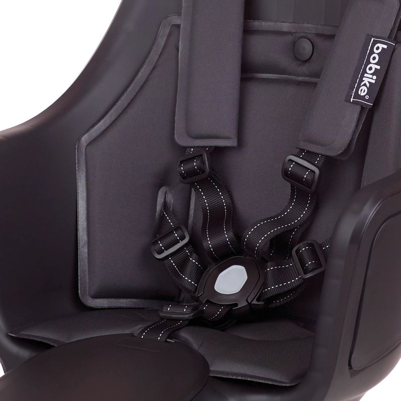 La Bobike Exclusive tiene un cinturón de seguridad de 5 puntos. Las correas de los hombros se pueden ajustar en 5 puntos diferentes. El cinturón de seguridad también incorpora acolchados suaves y cómodos.