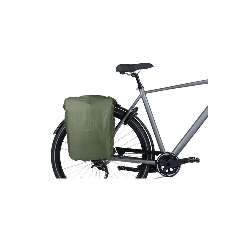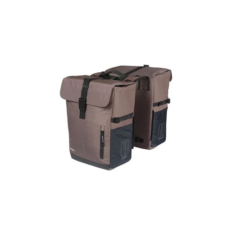 La alforja doble Basil City se adapta al ritmo de la ciudad: trabajo, amigos, salir, al mercado o de compras. La bolsa para bicicleta es compacta, no demasiado grande pero sí lo suficientemente espaciosa con una capacidad de 28 litros. Si necesitas un poco más de espacio, aumenta su capacidad a 32 litros. El cierre desplegable con velcro se puede ajustar en altura. El cierre desplegable también evita la lluvia.