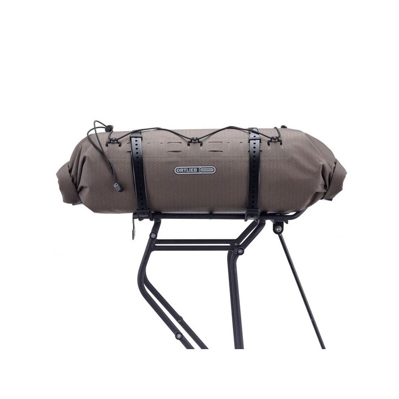 Las cadenas tipo margarita integradas ofrecen una opción de sujeción versátil que le permite sujetar la bolsa a otros artículos, así como sujetar artículos a la bolsa. Dos correas en O (520 mm) incluidas con ganchos de sujeción garantizan un montaje fácil y seguro en el portabicicletas, apto para diámetros de tubo de hasta 10 mm.