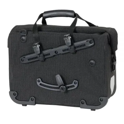 Negra y elegante durante el día. De noche un escudo de protección reflectante: La Office-Bag de la línea High-Visibility se presta de manera ideal para el viaje a la oficina: en la práctica bolsa caben dos carpetas DIN A4, lápices, etc. Con correa confortable de transporte y patas estables. Sistema de anclaje Quick-Lock3.1.