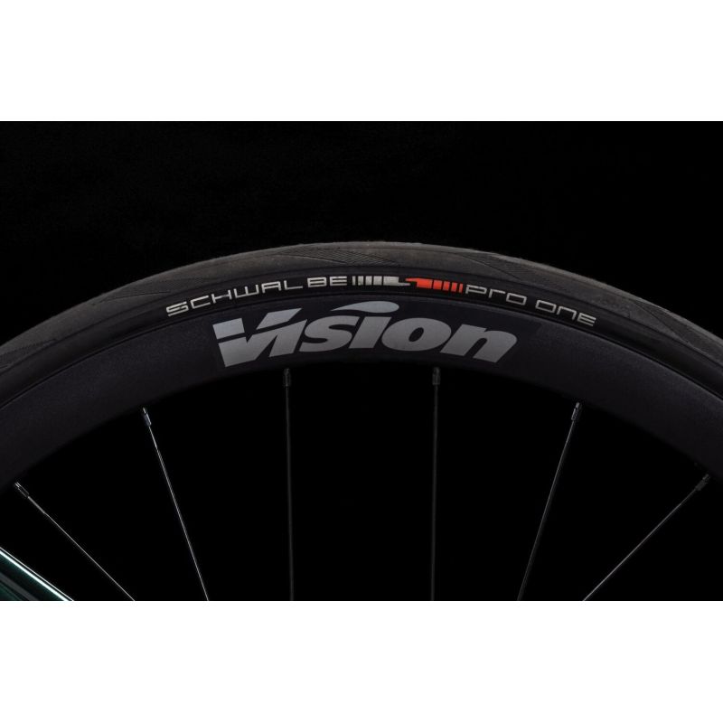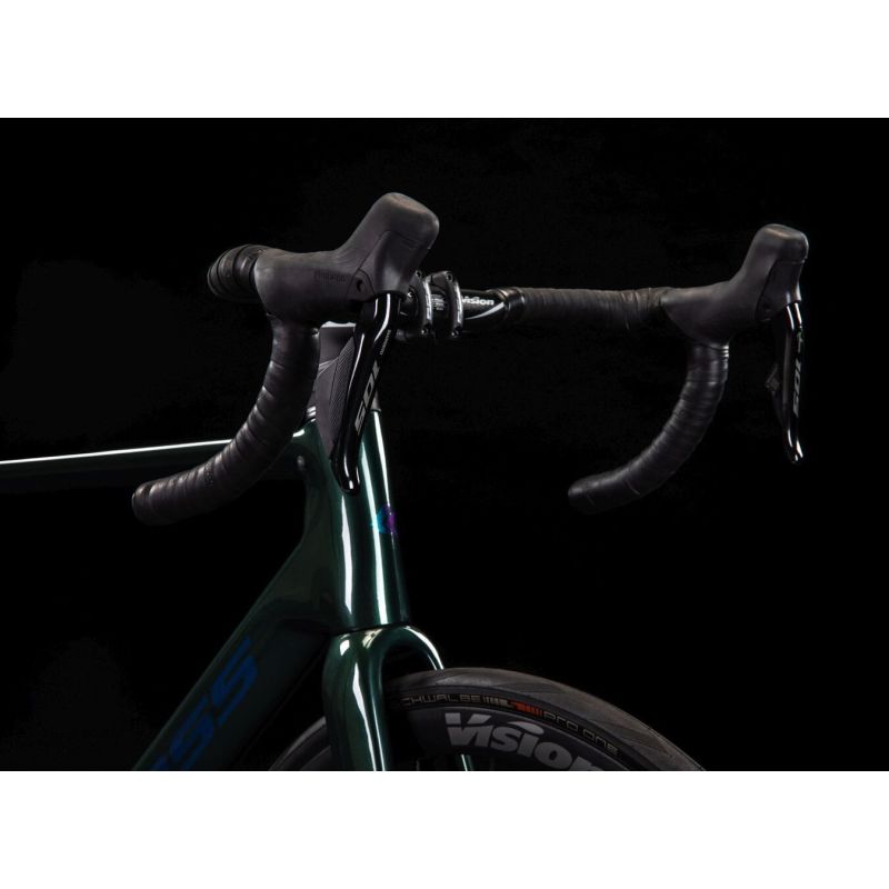Ideal para ciclistas que buscan rendimiento y fiabilidad, este modelo equipa ruedas FSA Trimax 35 y neumáticos Schwalbe Pro One EVO de 28 mm, perfectos para rodar rápido y con seguridad. Además, detalles como el guiado interno de cables o el sillín Fizik Vento Argo R5 subrayan su carácter premium.