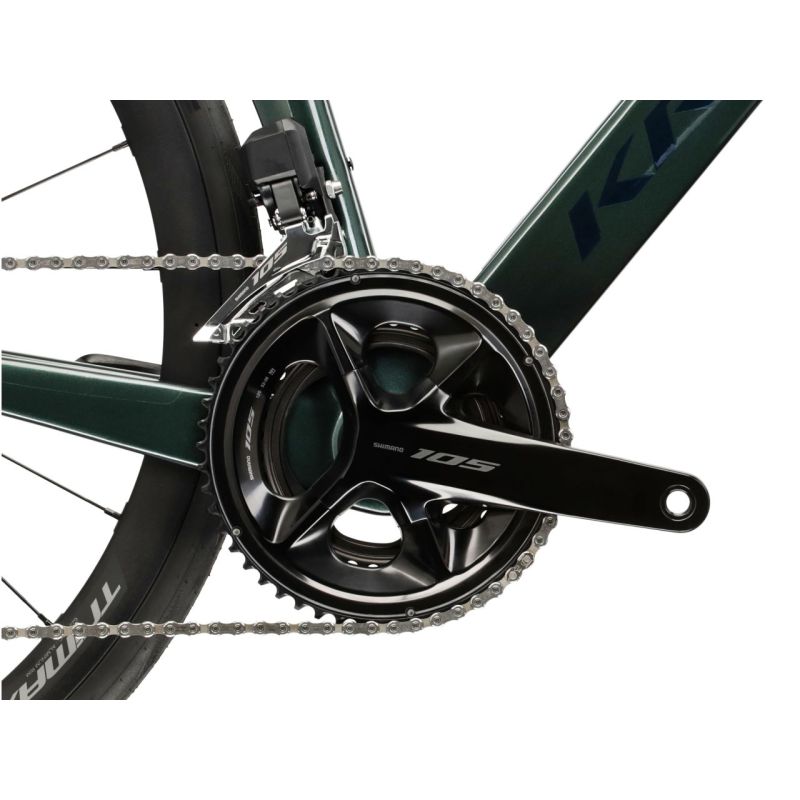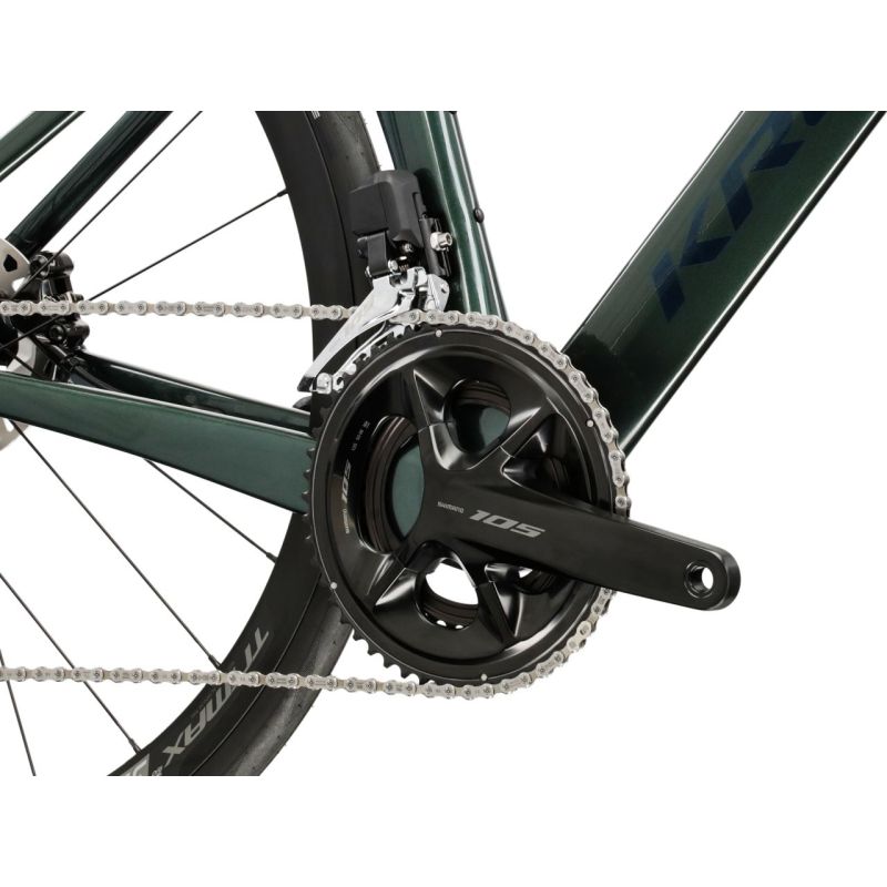 La KROSS Vento DSC 9.0 es una bicicleta de carretera que combina ligereza, aerodinámica y control absoluto. Su cuadro y horquilla de carbono garantizan rigidez y absorción de vibraciones, ofreciendo comodidad incluso en largas distancias. El grupo Shimano 105 Di2 de 24 velocidades proporciona cambios electrónicos precisos y suaves, mientras que los frenos de disco hidráulicos aseguran una frenada potente en cualquier condición.