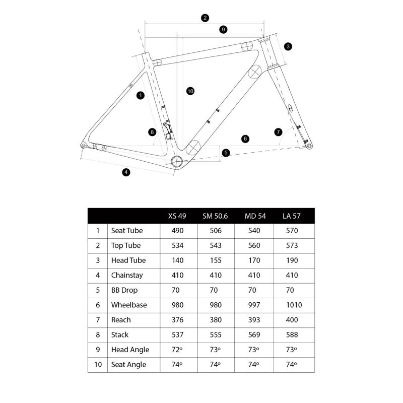 | Cuadro | Aluminio 6061 Hydroformed, cableado interno, geometría Gran Fondo |