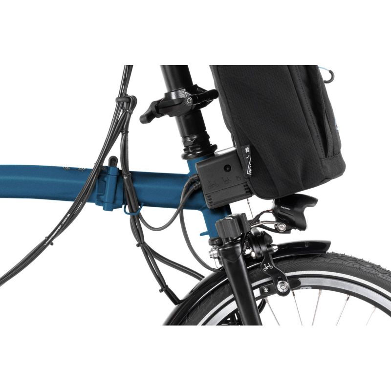 La compacta batería de iones de litio Brompton Electric de 300 Wh tiene toda la potencia que necesitas. Y cuando quieras cargarla, será tan fácil como conectar el móvil. Retira el paquete de la batería (2,9 kg incluida la bolsa) con un solo clic. Conéctalo a cualquier enchufe normal. Carga completa en 4 horas*. Aumenta la potencia si tienes prisa.