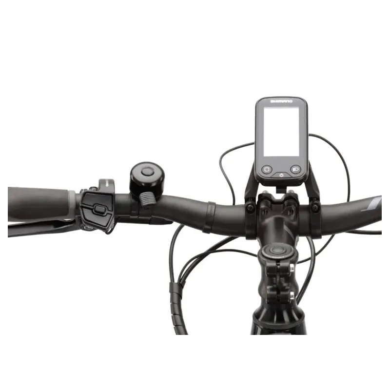 El conjunto también incluye una pantalla Shimano que te permite leer la información más importante relacionada con la conducción. Descubrirás en qué modo se encuentra actualmente el motor, el nivel de carga de la batería y cuántos kilómetros se han recorrido durante el viaje.