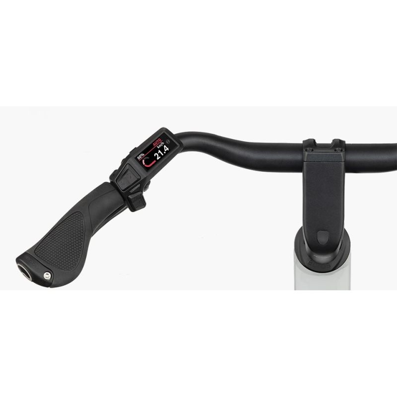 El cockpit opcional está perfectamente integrado en el manillar y destaca por un guiado de cables limpio y ordenado. El generoso display Kiox 300 es su compañero de viaje inteligente tanto para los desplazamientos diarios como para salidas más exigentes, con los datos de ruta y datos de fitness siempre a la vista. Gracias a la potencia regulable, la posición de conducción se puede ajustar de más confortable a más deportiva según sus preferencias del momento. El display Intuvia 100 de serie sin cockpit presenta los datos de velocidad, autonomía y muchos otros parámetros de forma clara y ordenada. Para ambos displays, la selección del modo de conducción se realiza cómodamente a través de LED Remote, que señaliza el modo seleccionado mediante colores.