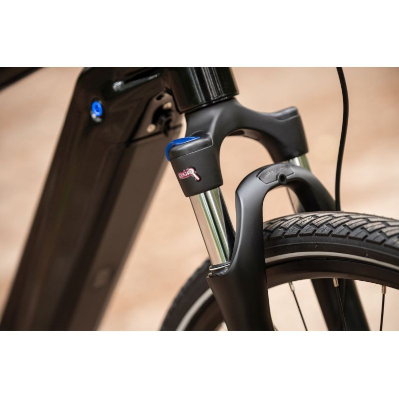 La horquilla de suspensión SR Suntour con un recorrido de 63 mm te permitirá llegar fácilmente a tu destino sin tener que preocuparte por bordillos o adoquines. En el bosque, sin embargo, podrás montar sin preocuparte por piedras o raíces. El bloqueo situado en la corona de la horquilla permitirá atravesar de forma más fácil y eficaz los tramos llanos de la ruta.