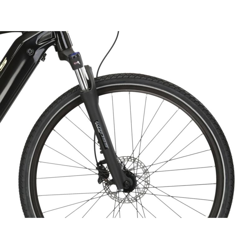 Para garantizar una conducción cómoda en todas las condiciones, KROSS Evado Hybrid 3.0 está equipado con un motor eléctrico Bafang montado centralmente. Se complementa con una eficiente batería de 882 Wh de capacidad, gracias a la cual recorrer muchos kilómetros sin cargar no será un reto.