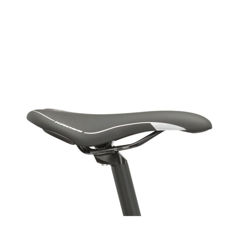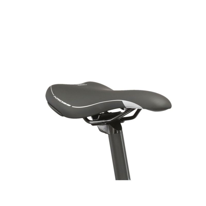 El cuadro KROSS Evado Hybrid 3.0 está fabricado en aluminio 6061. Esta aleación especial de aluminio hace que la bicicleta sea rígida y resistente a las roturas. Al mismo tiempo, es un material relativamente ligero que puede sorprender a muchos ciclistas por sus propiedades. El marco está recubierto de polvo, lo que se traduce en durabilidad de la pintura y resistencia de la pintura a daños mecánicos.