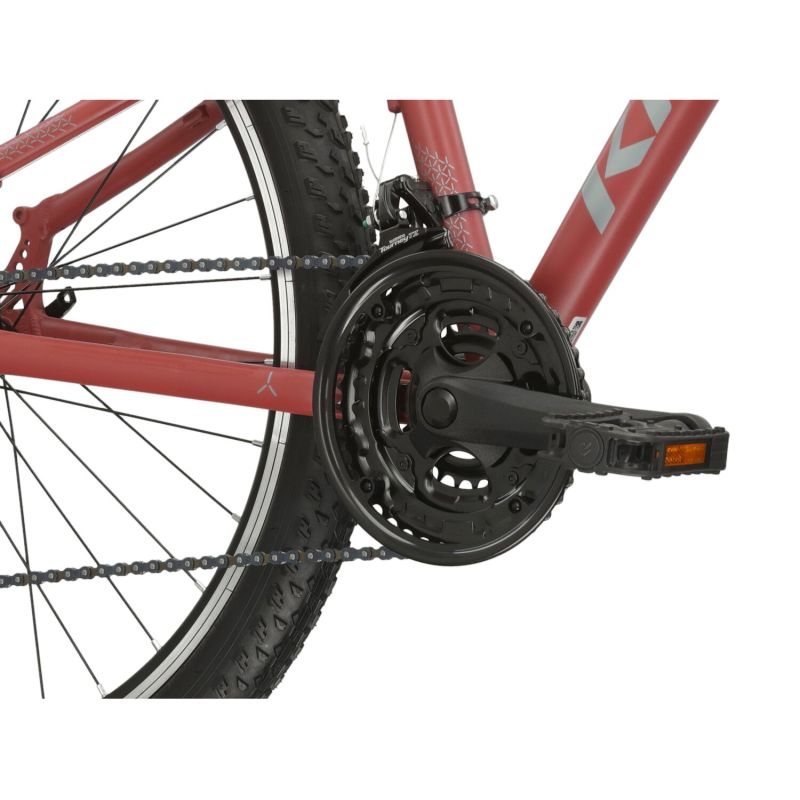 La transmisión Shimano Tourney de 21 velocidades con desviadores TY300/500 asegura un rango adecuado para afrontar tanto subidas como trayectos en llano. Los frenos V-Brake de aluminio, ligeros y sencillos de mantener, ofrecen un control seguro en cada situación.