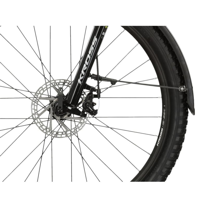La versión EQ (equipada) de nuestra bicicleta KROSS Lea 2.0 EQ está equipada adicionalmente con útiles accesorios. La iluminación integrada con la bicicleta hará que sea más fácil andar por la noche y el portaequipajes le permitirá transportar el equipo necesario o instalar alforjas adicionales. El conjunto también incluye un sistema completo de guardabarros, que proporciona una excelente protección contra el barro, y el soporte elimina la necesidad de buscar soporte para la bicicleta.