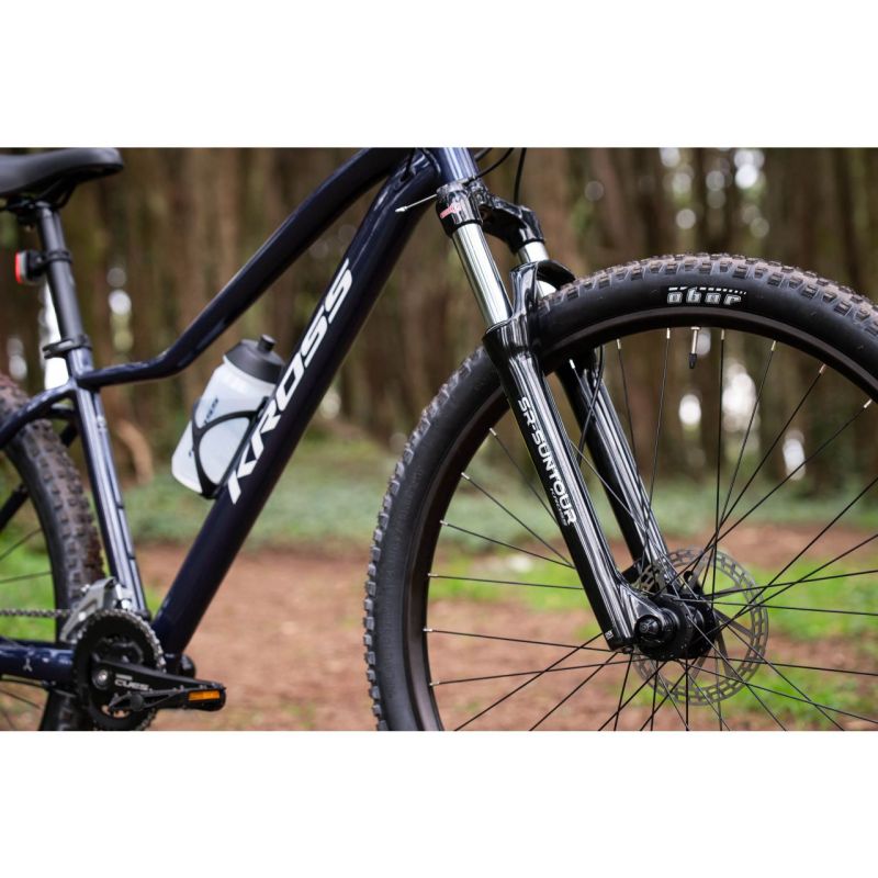 La KROSS Lea 5.0 es una mountain bike pensada para mujer que combina un cuadro de Aluminium Performance ligero y resistente con una geometría específica femenina, aportando confort y control tanto en los desplazamientos diarios como en las rutas por pistas y senderos suaves. Equipada con una horquilla SR Suntour XCM de 100 mm con bloqueo, permite alternar fácilmente entre tramos rápidos y tramos bacheados; la transmisión Shimano 2×9 ofrece un rango de marchas amplio y cambios precisos, mientras que los frenos hidráulicos Shimano MT200 proporcionan potencia y dosificación en cualquier condición meteorológica. Las ruedas de 29" con cubiertas 29x2,25" mejoran la tracción y la estabilidad, y el cuadro admite neumáticos de hasta 65 mm para quien busque más agarre.