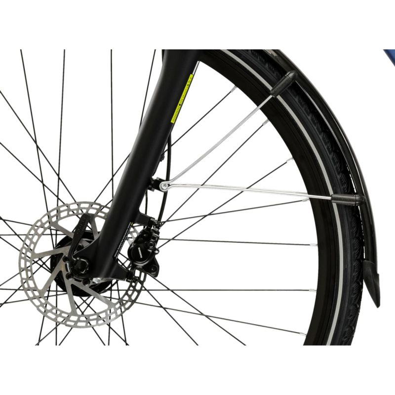 Gracias a la horquilla Suntour NEX DS con 63 mm de recorrido, podrás superar bordillos o caminos irregulares sin perder confort. El sillín Selle Royal y la tija amortiguada de 31,6 mm reducen vibraciones, mientras que los guardabarros, portabultos e iluminación integrada la convierten en una bici ideal para el día a día.