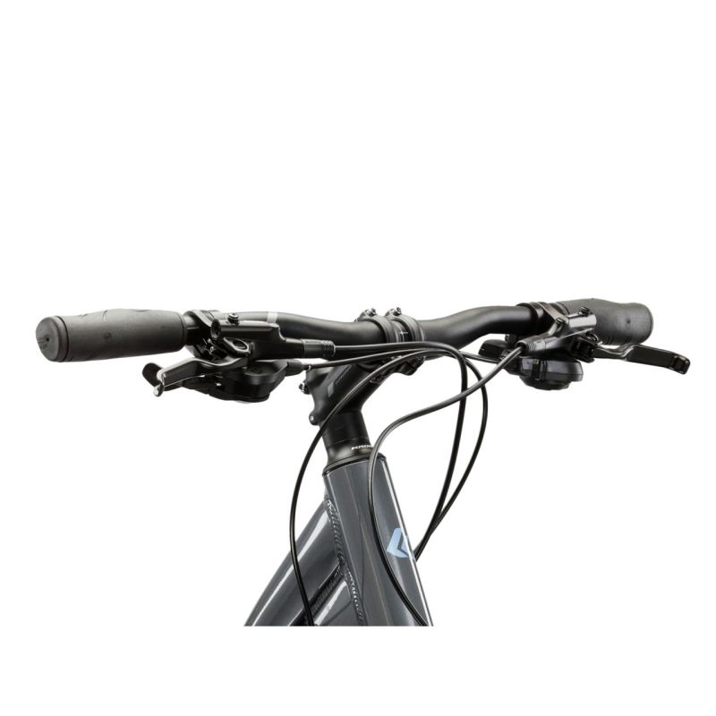 La geometría mixta facilita el acceso al cuadro, mejorando la comodidad sin comprometer la estabilidad. El cableado interno aporta un diseño limpio y una mayor protección frente al polvo y la humedad. La horquilla SR Suntour NEX HLO con 63 mm de recorrido absorbe vibraciones, ideal para rodar por adoquines o caminos de grava ligera.