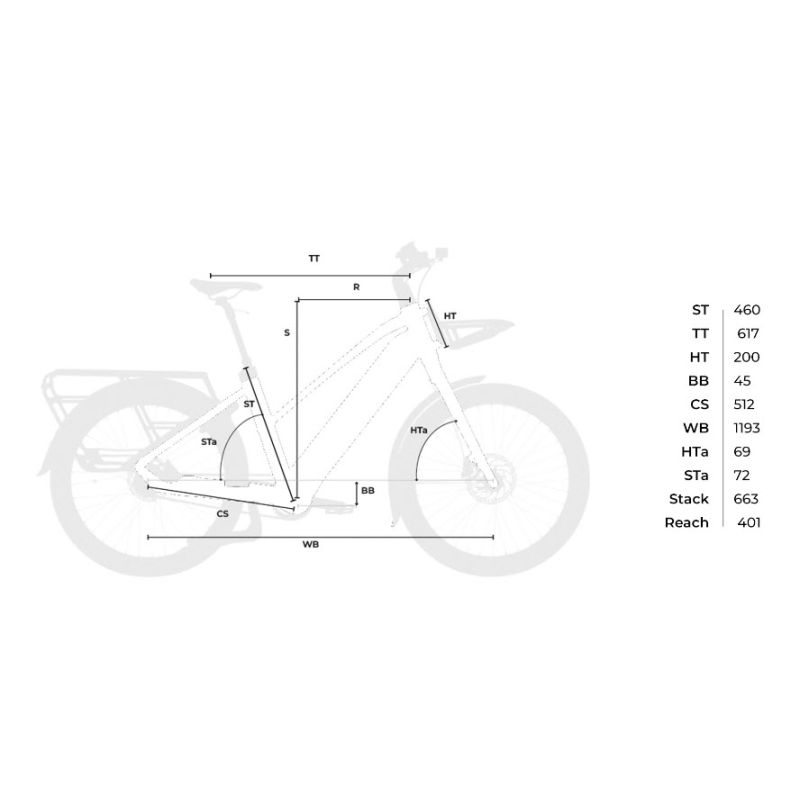 Geometría de bici convencional, la más compacta de la familia cargo.