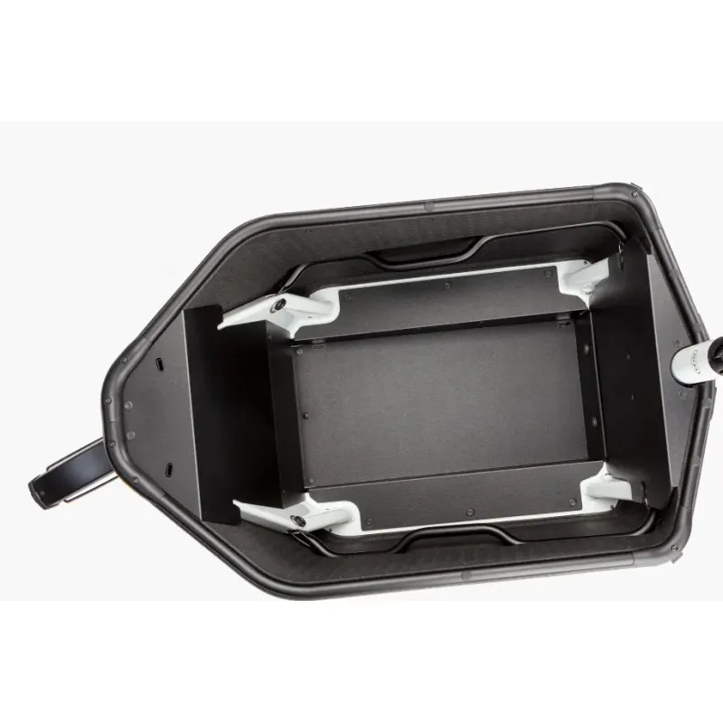 La caja de transporte de polipropileno expandido (EPP) se fabrica sin contaminantes y es 100 % reciclable. En ella puede transportar de forma segura hasta tres niños de hasta 7 años de edad. La caja está equipada con una barra de protección lateral y con una barra central, que sirve de asidero. Las sillas infantiles opcionales cuentan con cinturones de seguridad de 5 puntos. La opción Buggy, con paneles laterales a media altura, permite a los pasajeros subir y bajar de la bicicleta con total facilidad, al tiempo que los protege con una estructura de capota integral muy estable. (Superficie de carga para un peso máximo autorizado de 70 kg. Antes de utilizarlas, consulte además la normativa de su país sobre el transporte de niños y respétela.)