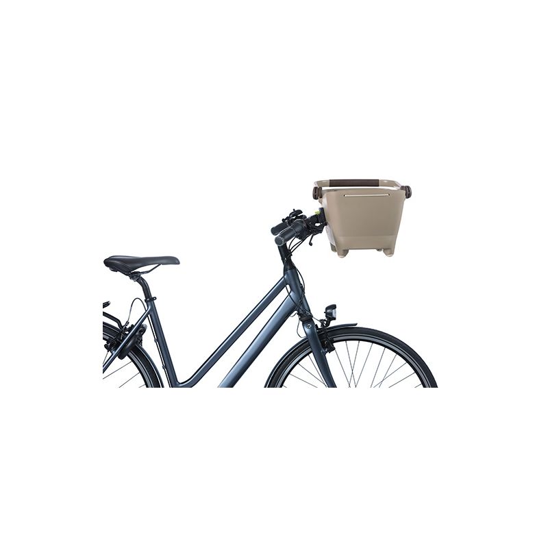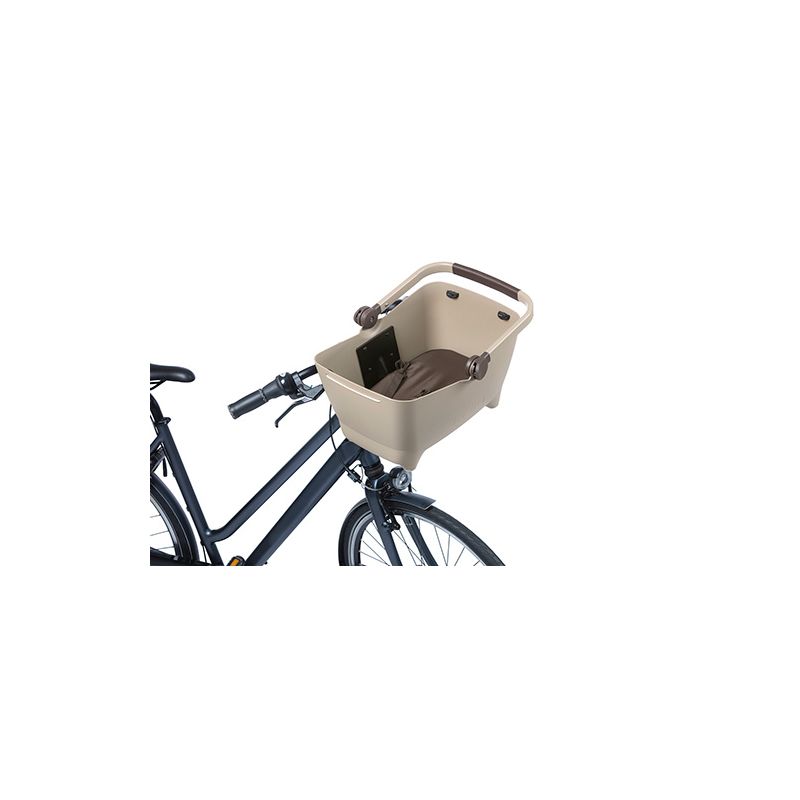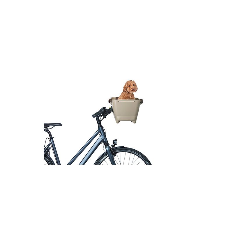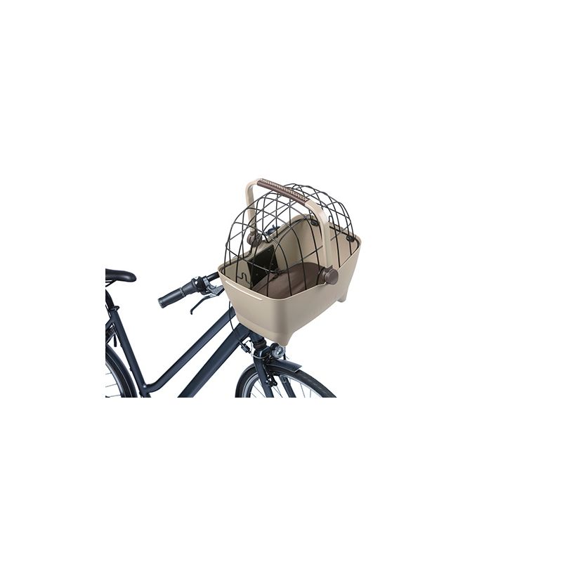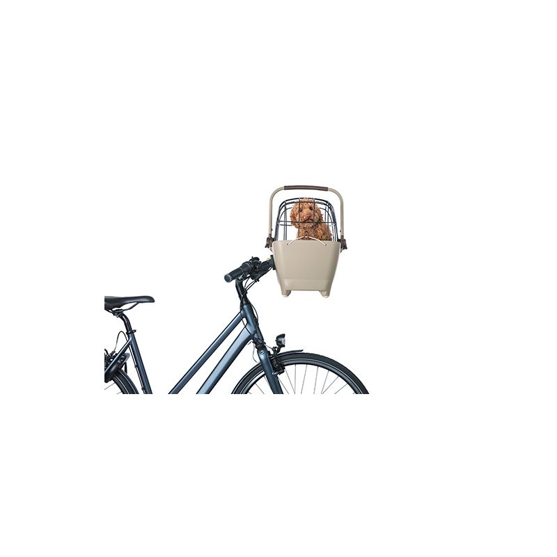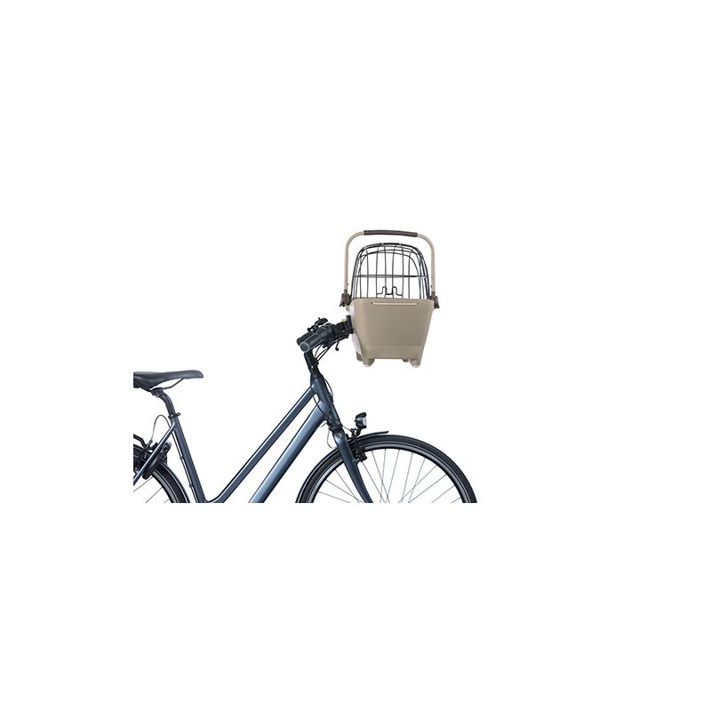 Se instala en la parte frontal de la bicicleta mediante el sistema de fijación KF, lo que permite colocar y retirar la cesta de forma sencilla cuando sea necesario. Es una opción ideal para bicicletas de paseo y urbanas, especialmente en entornos donde los trayectos diarios forman parte de la rutina. Gracias a su formato rígido y su diseño envolvente, la mascota viaja en una posición elevada, con buena visibilidad y ventilación.