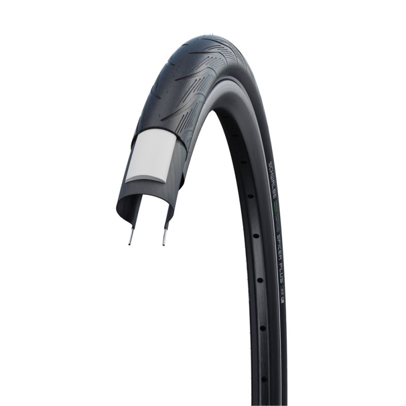 La Schwalbe Spicer Plus es una cubierta para bicicletas urbanas y fitness pensada para quienes buscan un rodar ágil en asfalto y caminos compactos, con un extra de seguridad frente a pinchazos gracias a la protección PunctureGuard. Su dibujo equilibrado favorece una conducción dinámica y estable, y además cuenta con recomendación E-25, adecuada para pedelecs con asistencia hasta 25 km/h.