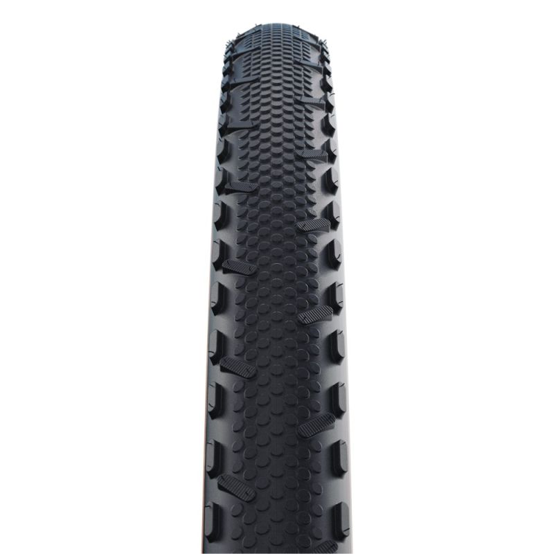 La versátil banda de rodadura rueda fácilmente y con bajas vibraciones, pero con un agarre seguro y fiable en carreteras de grava y pistas más suaves y secas.