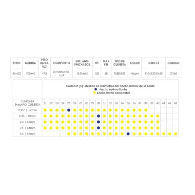 Peso: 700x40 (475g*) Menos peso en la zona de rodadura mejora la aceleración.