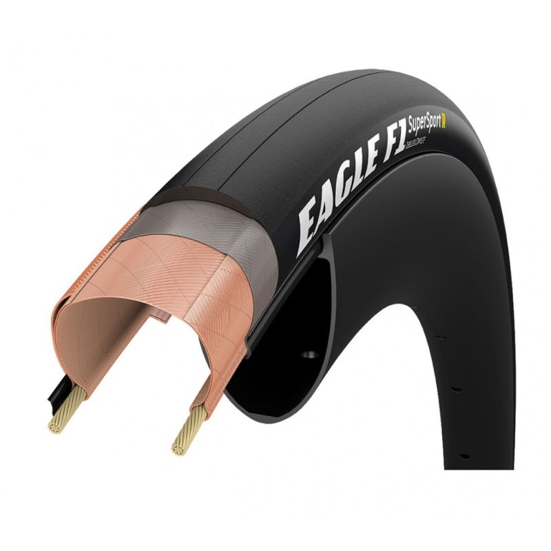 La Eagle F1 SuperSport, desarrollada para la velocidad, está diseñada para ofrecer una baja resistencia a la rodadura y un peso reducido. Ideal para carreras en carretera, contrarreloj y competiciones de triatlón al más alto nivel.