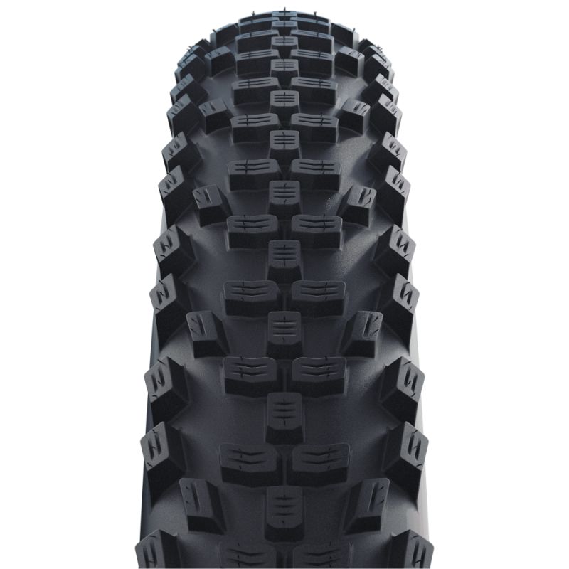 - Moderna banda de rodadura para bicicletas de trail con bloques laterales estables para proporcionar incluso más tracción.