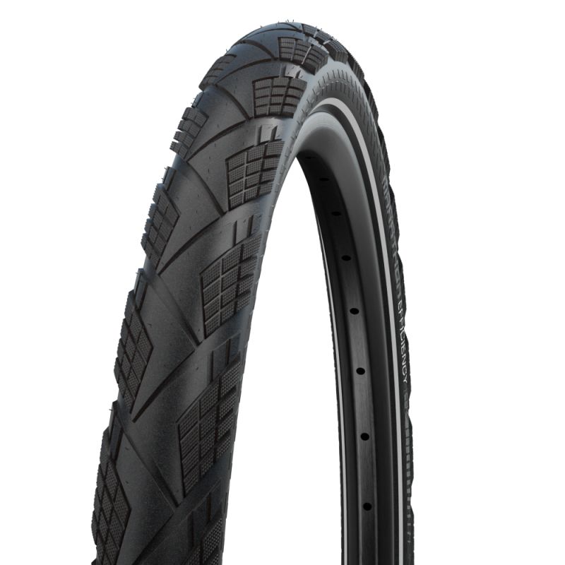 La Schwalbe Marathon Efficiency es una cubierta touring de alto rendimiento diseñada para ofrecer la menor resistencia a la rodadura dentro de la gama Marathon. Gracias al compuesto ADDIX Race y a la construcción Super Race, proporciona una rodadura extremadamente fluida, ideal para largas distancias, cicloturismo deportivo y e-bikes rápidas. En DOYOUBIKE la encontrarás dentro de cubiertas de bicicleta y como opción avanzada en cubiertas para e-bike.