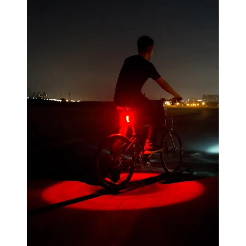 La Tern Vizy Light proyecta una luz radial de 360° en el asfalto cuando ruedas. Esto crea una clara señal para que los coches pasen a una distancia de seguridad al iluminar también tu cuerpo.