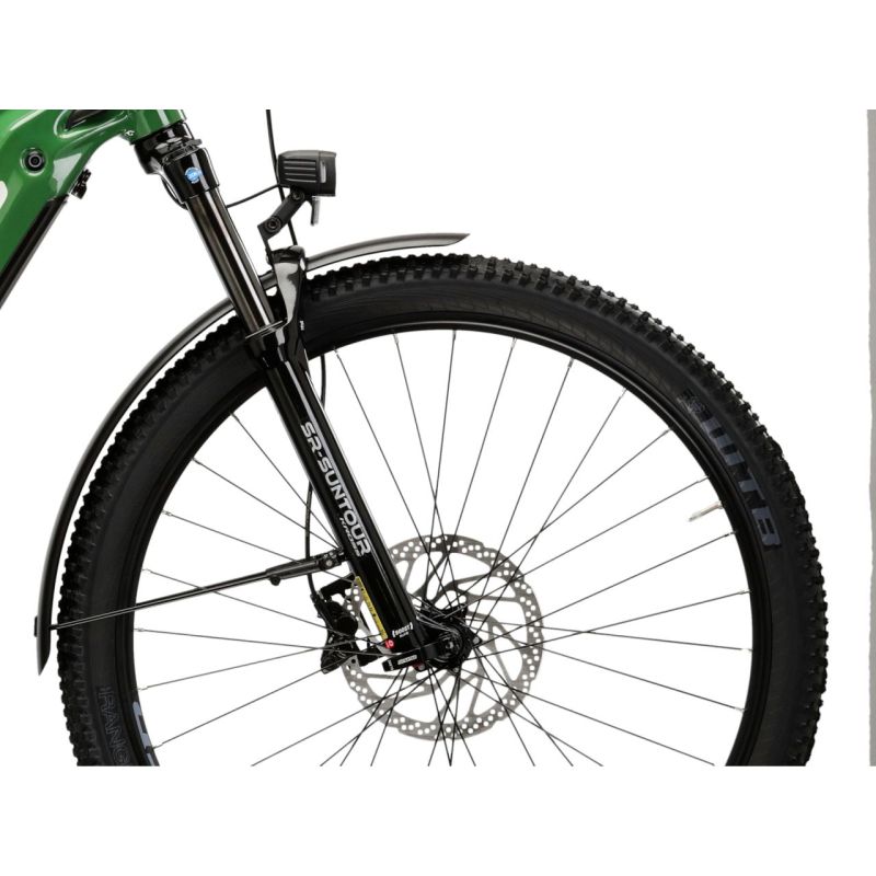 El amortiguador neumático SR Suntour con una carrera de 130 mm garantiza una gran suavidad de funcionamiento y una excelente amortiguación de las vibraciones generadas al conducir sobre superficies irregulares y con baches.