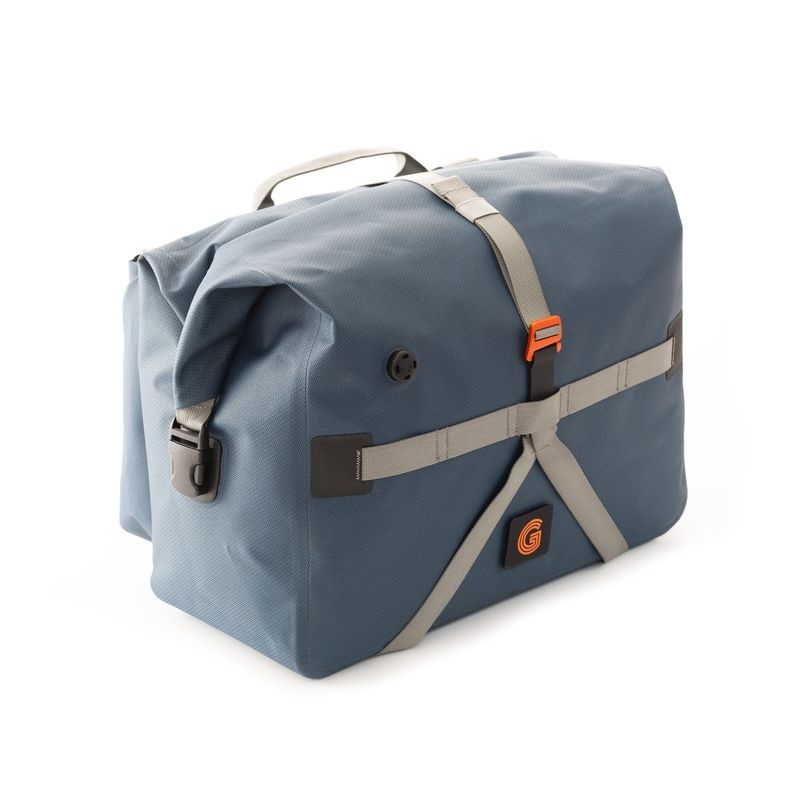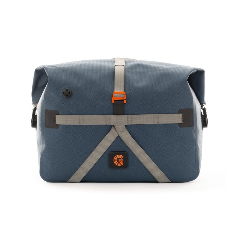 La bolsa enrollable más grande de la gama de bolsas impermeables de Brompton. Con 23 litros la bolsa ofrece suficiente espacio para la mayoría de los viajes y es completamente impermeable. Se ajusta a la parte delantera de tu Brompton con un rápido clic, para que puedas guardarlo todo y pedalear con facilidad.