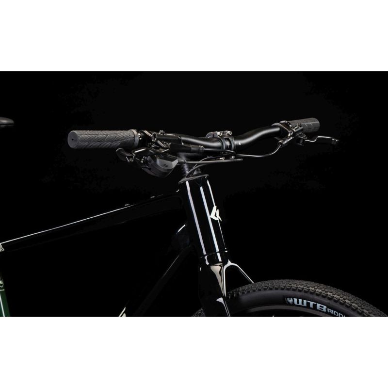 El grupo Shimano CUES 1x10 ofrece un accionamiento robusto y silencioso, con un rango 11–48T que permite escalar sin romper la cadencia y mantener velocidad en pistas compactas. La frenada hidráulica (BR-UR300 con discos RT30 180/160) aporta potencia y, sobre todo, modulación progresiva para bajar con seguridad en firmes variables. Las cubiertas WTB Riddler 700x45C equilibran agarre lateral y baja resistencia a la rodadura; los bujes Shimano RS470 y las llantas de aluminio completan un conjunto fiable y fácil de mantener.