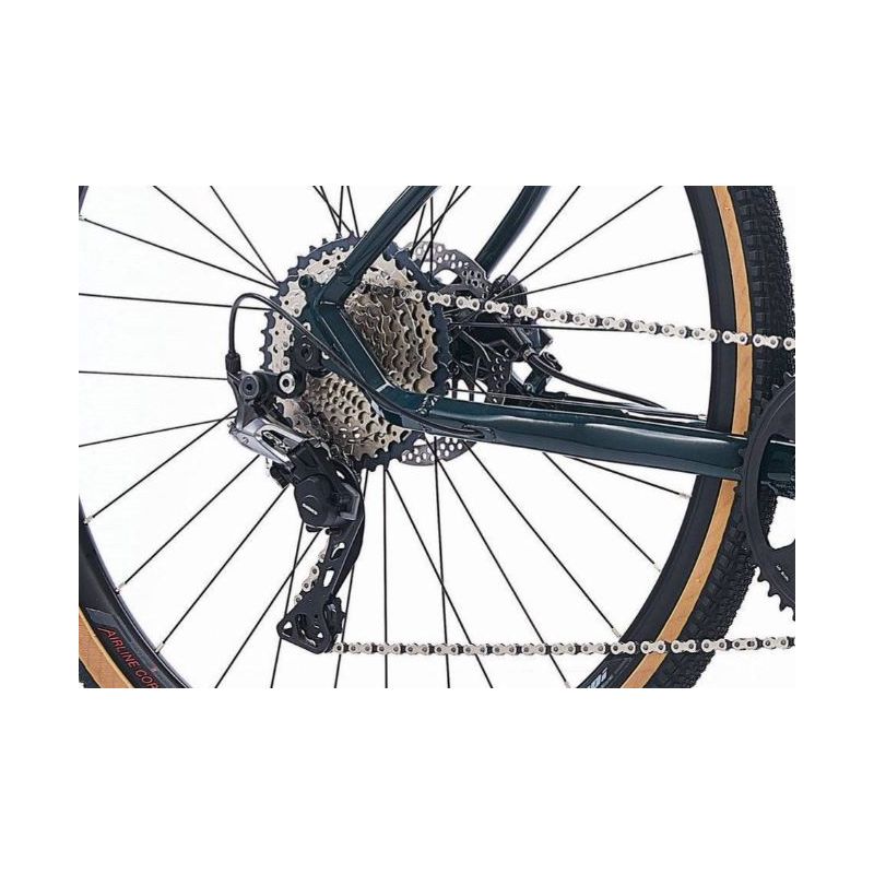 La transmisión Shimano GRX RX810-R/RX815 con cambio RX812 y cassette SLX M7000 de 11 velocidades asegura cambios precisos incluso bajo carga. Los frenos hidráulicos RX810 garantizan una frenada potente y modulada en cualquier condición.