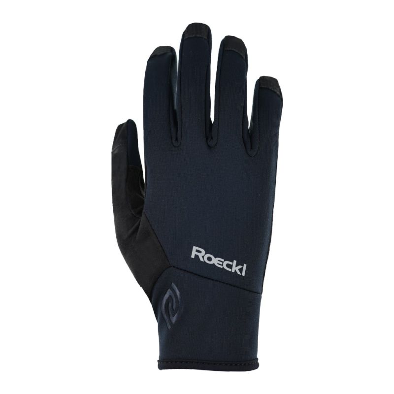 Para lograr ese look clásico con un toque de elegancia, este modelo está disponible con un diseño triangular en negro, morado moderno o azul llamativo con una palma clara. El logotipo femenino con letras ROECKL y los elementos de diseño reflectantes en las zonas de las manos especialmente expuestas al andar en bicicleta añaden un toque visual.