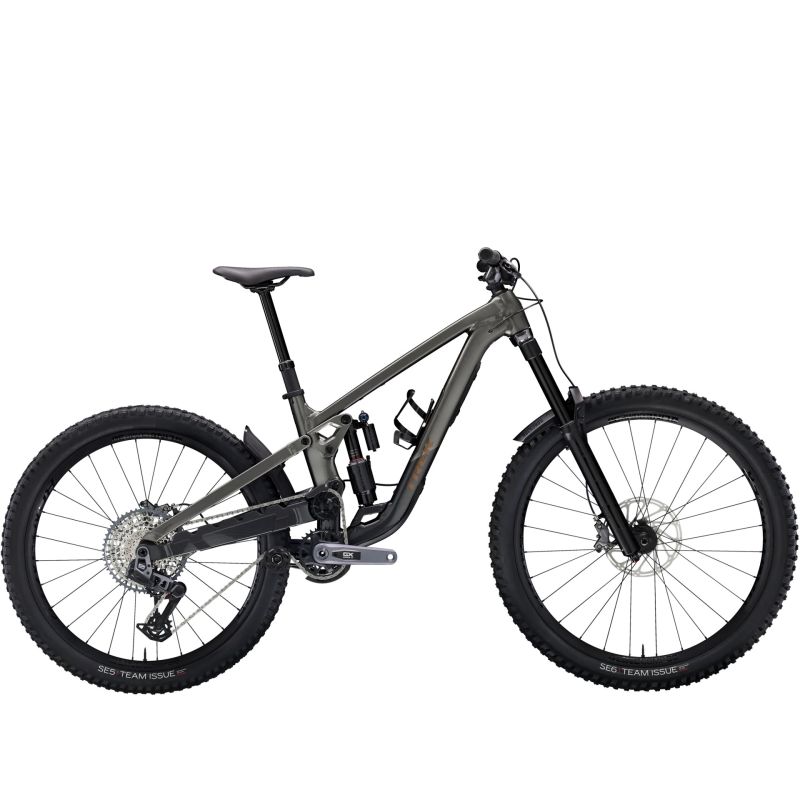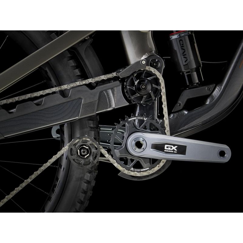 Un cuadro de aluminio Alpha Platinum con suspensión de pivote alto y roldana, además de almacenamiento interno. 170 mm de recorrido delantero y trasero con una horquilla RockShox ZEB Select+ con muelle DebonAir y amortiguador Charger 3 RC2, y amortiguador RockShox Super Deluxe Select+. Una amplia combinación de marchas para los ascensos más duros con la transmisión inalámbrica GX AXS de SRAM, una tija telescópica Bontrager Line y una configuración de ruedas MX con ruedas Bontrager Line Comp 30 Tubeless Ready de 29 pulgadas delante y 27,5 pulgadas detrás con buje Rapid Drive.