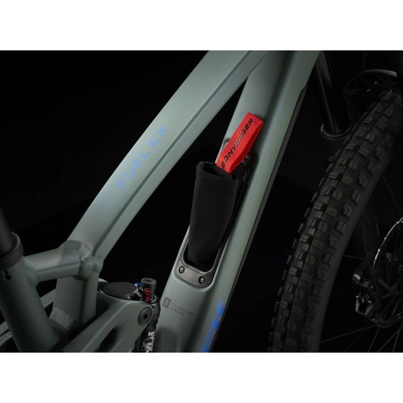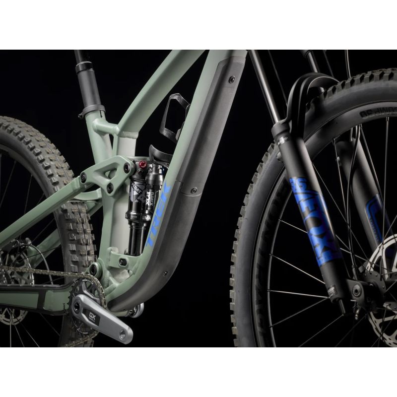 La transmisión electrónica SRAM GX Eagle AXS elimina cables y mejora la precisión del cambio, mientras que la suspensión FOX mantiene el control en todo tipo de terreno. Las ruedas Bontrager tubeless ready permiten rodar con menor presión para mejorar la tracción y reducir el riesgo de pinchazos.
