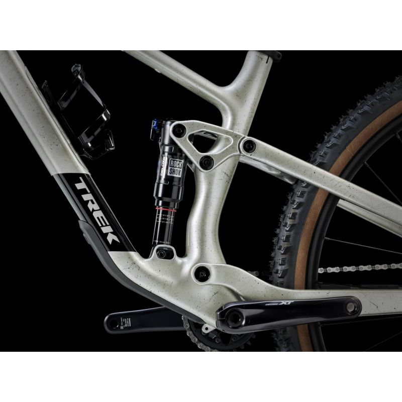 Con un recorrido de 120 mm detrás y de 130 mm delante de la suspensión RockShox, proporciona un pedaleo equilibrado que se mantiene eficiente en las subidas y juguetón en los descensos.
