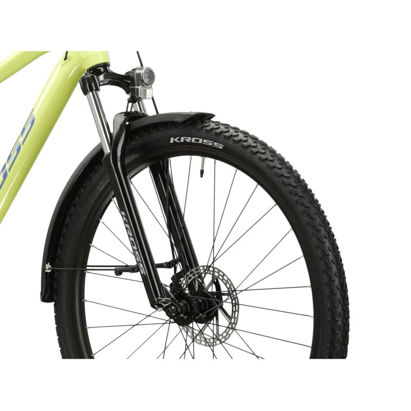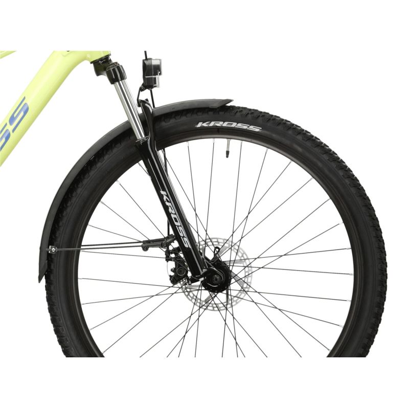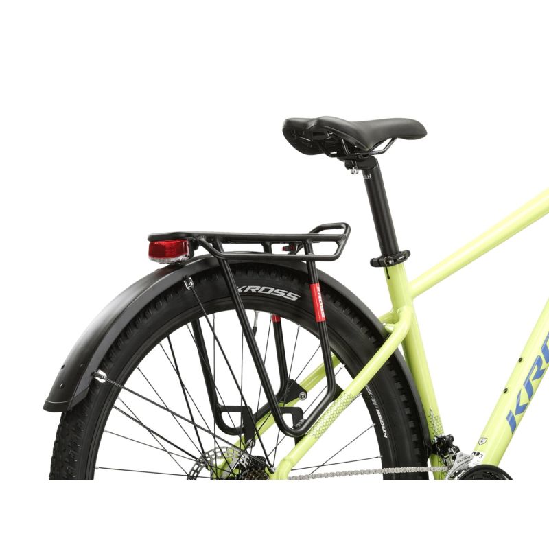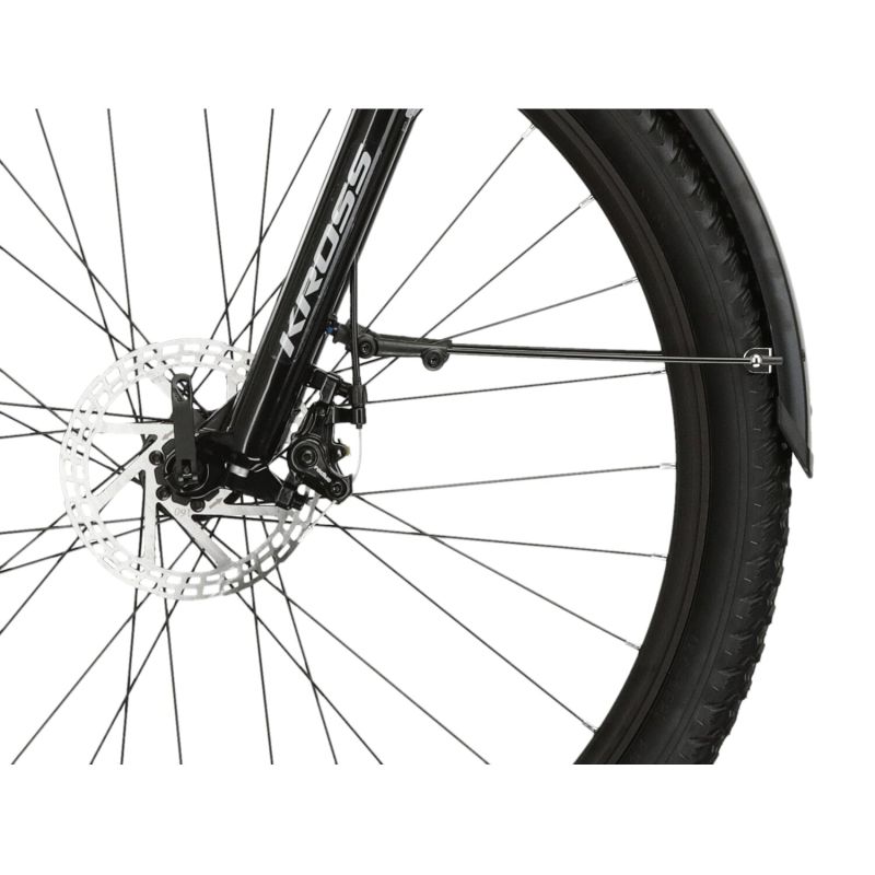 La versión EQ (equipada) de nuestra bicicleta KROSS Hexagon 2.0 EQ EQ está equipada adicionalmente con útiles accesorios. La iluminación integrada con la bicicleta hará que sea más fácil andar por la noche y el portaequipajes le permitirá transportar el equipo necesario o instalar alforjas adicionales. El conjunto también incluye un sistema completo de guardabarros, que proporciona una excelente protección contra el barro, y el soporte elimina la necesidad de buscar soporte para la bicicleta.