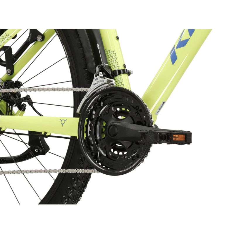 KROSS Hexagon 2.0 EQ es una excelente opción para cualquiera que busque una bicicleta universal. El probado accionamiento con 21 marchas garantiza un funcionamiento económico y sin problemas. El desviador trasero del grupo Altus tiene un diseño duradero y probado que garantiza cambios suaves y receptivos incluso en terrenos más difíciles.