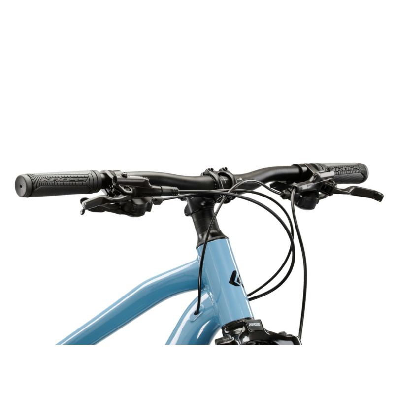 El cuadro KROSS Hexagon 4.0 está fabricado en aluminio 6061. Esta aleación especial de aluminio hace que la bicicleta sea rígida y resistente a las roturas. Al mismo tiempo, es un material relativamente ligero que puede sorprender a muchos ciclistas por sus propiedades. El marco está recubierto de polvo, lo que se traduce en durabilidad de la pintura y resistencia de la pintura a daños mecánicos.