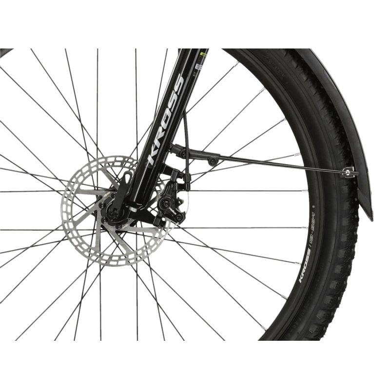 La versión EQ (equipada) de nuestra bicicleta KROSS Hexagon 2.0 EQ EQ está equipada adicionalmente con útiles accesorios. La iluminación integrada con la bicicleta hará que sea más fácil andar por la noche y el portaequipajes le permitirá transportar el equipo necesario o instalar alforjas adicionales. El conjunto también incluye un sistema completo de guardabarros, que proporciona una excelente protección contra el barro, y el soporte elimina la necesidad de buscar soporte para la bicicleta.