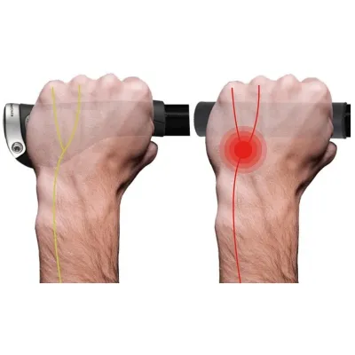 Si tu muñeca se dobla en exceso durante demasiado tiempo, los nervios, tendones y vasos sanguíneos se comprimen. El resultado es que el canal del túnel carpiano se contrae, lo que podría dañar el nervio mediano. Los viajes largos y la fatiga hacen que al ciclista le resulte aún más difícil mantener una postura correcta y saludable. El diseño alado de nuestros puños GP proporcionan a la mano más apoyo y automáticamente coloca la muñeca en una posición más ergonómica, evitando entumecimiento, hormigueo y dolor.