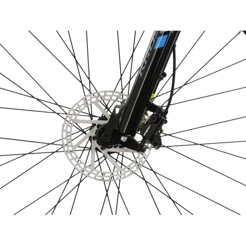 La horquilla de suspensión SR Suntour con un recorrido de 100 mm garantiza un funcionamiento muy suave y una excelente amortiguación de las vibraciones generadas al circular sobre superficies irregulares y con baches. El bloqueo situado en la corona de la horquilla permitirá atravesar de forma más fácil y eficaz los tramos llanos de la vía.