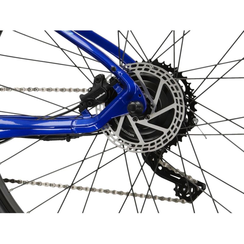La horquilla de suspensión SR Suntour con un recorrido de 100 mm garantiza un funcionamiento muy suave y una excelente amortiguación de las vibraciones generadas al circular sobre superficies irregulares y con baches. El bloqueo situado en la corona de la horquilla permitirá atravesar de forma más fácil y eficaz los tramos llanos de la vía.