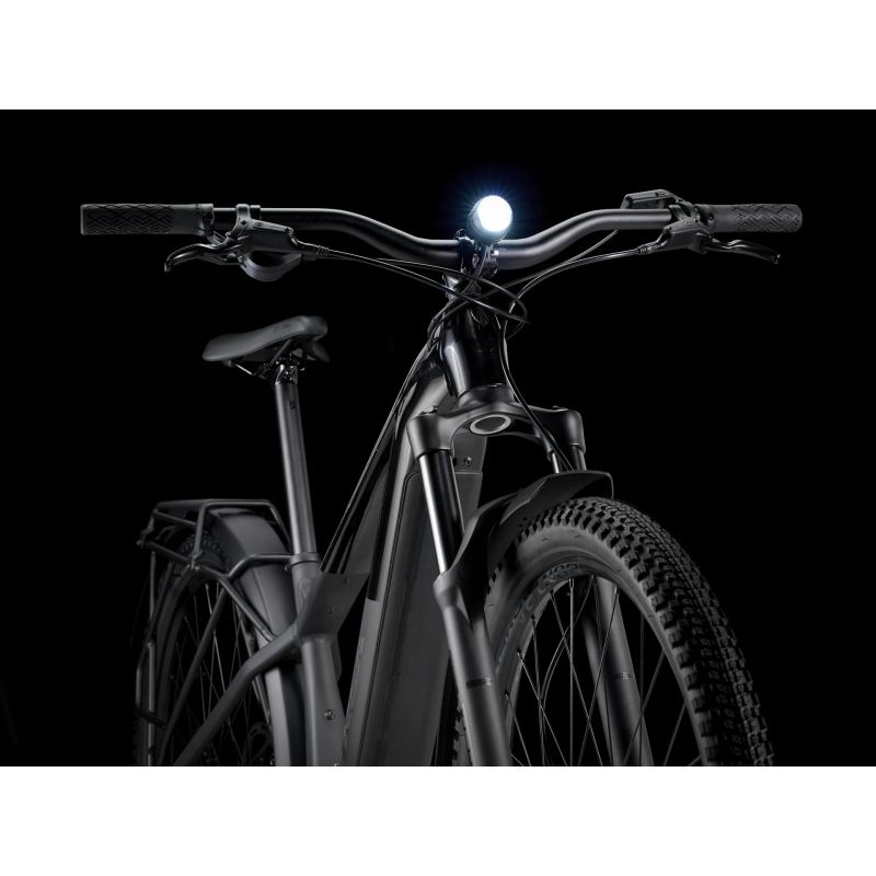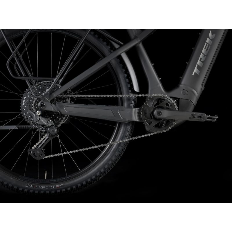 Un cuadro rígido de aluminio Alpha Platinum y una horquilla con suspensión SR Suntour de 120 mm y muelle de aire. Un potente motor Bosch Performance Line CX (85 Nm, 250 W), con una batería extraíble PowerTube RIB 2.0 de 600 Wh y un controlador Purion 200. Una transmisión Shimano CUES de 10 velocidades, frenos de disco hidráulicos Tektro para frenar con potencia y soportes para personalizar tu configuración. Y, además, luces, guardabarros y un portabultos trasero.
