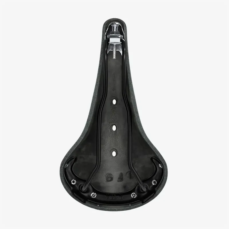 La clave del B17 Estrecho está en su comportamiento flexible. En lugar de depender de acolchados blandos que se fatigan con el tiempo, utiliza cuero curtido vegetal tensado sobre la estructura para crear un apoyo que trabaja como una pequeña suspensión: se mueve de forma controlada con cada pedalada y, con el uso, se adapta a la anatomía del ciclista. Ese ajuste progresivo es lo que explica por qué muchos ciclistas lo consideran un sillín “de largo recorrido”: cuanto más lo usas, más personal se vuelve.