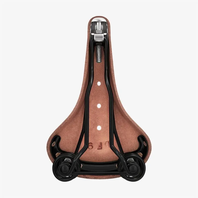 El Flyer es un sillín de turismo con muelles de suspensión basado en nuestro clásico Brooks B17. Perfecto para ciclismo de aventura, desplazamientos urbanos y viajes de larga distancia, el Flyer comparte los mismos acabados de piel que el B17, añadiendo al confort de este popular modelo el extra de suspensión que aportan los dos muelles posteriores. Siendo uno de nuestros modelos más populares, el Flyer se fabrica a mano en nuestra fábrica de Smethwick, Inglaterra, y se entrega de serie con remaches de tubo de acero y railes de acero con recubrimiento de polvo negro. Fabricado en Inglaterra