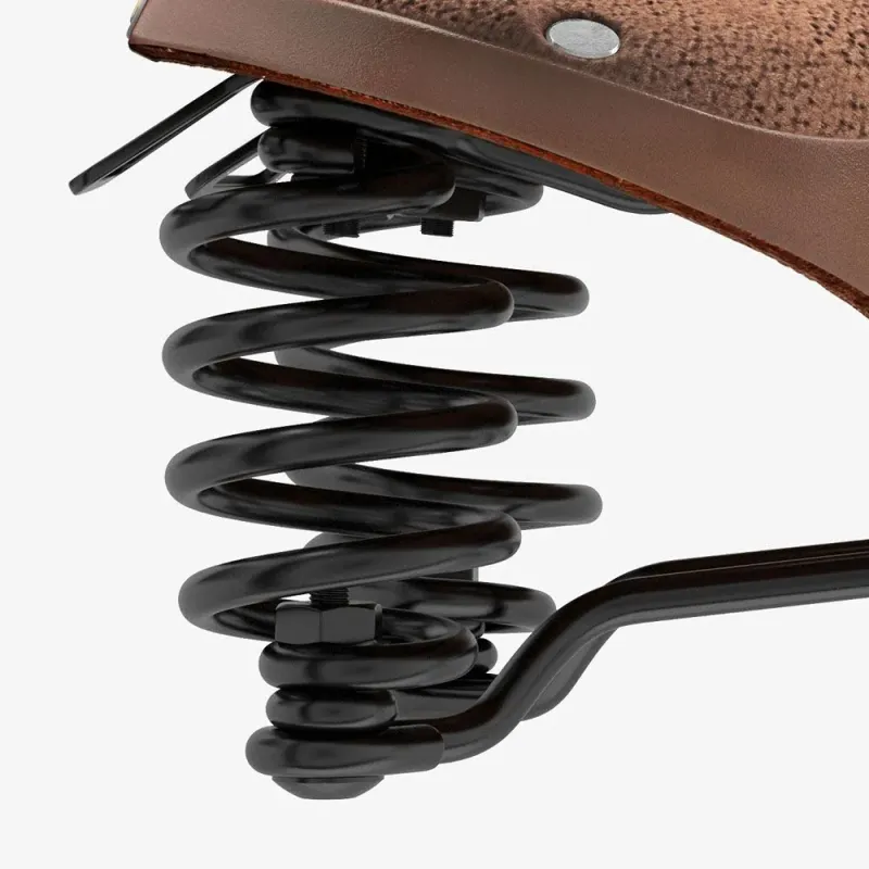 El Brooks B67 Softened Corto es un sillín de cuero con muelles diseñado específicamente para bicicletas de ciudad, bicicletas de estilo holandés, bicicletas de carga y modelos orientados al cicloturismo en posición erguida. Su diseño clásico con suspensión trasera proporciona una absorción eficaz de las irregularidades del terreno, convirtiéndolo en una opción ideal para desplazamientos diarios y rutas relajadas donde el confort es prioritario.