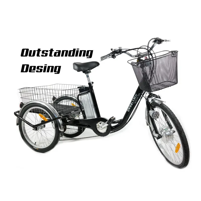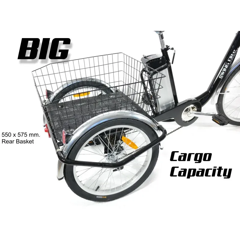 El "hermano mayor" de nuestro popular Triciclo Swing. Un triciclo para adultos, con pedaleo asistido eléctrico, ahora más grande y más equipado. Dispone de un panel LCD con 5 niveles de asistencia, limitador de potencia (3 niveles) y batería de 10 AH con celdas Samsung. En la parte ciclo, destacan sus ruedas de 24" y 20" (del/tras) y el cambio Shimano SIS con 6 velocidades.