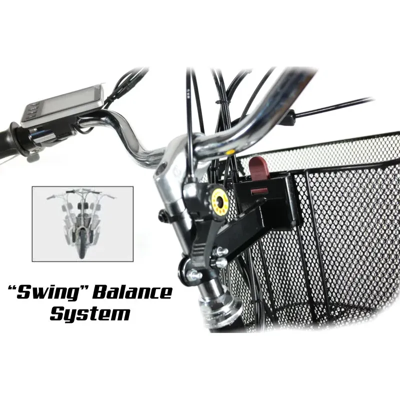Gracias a sus único sistema de balanceo, este triciclo se comporta casi como una bicicleta normal al tomar las curvas. El balanceo se puede bloquear para aquellas personas que necesitan una estabilidad total.